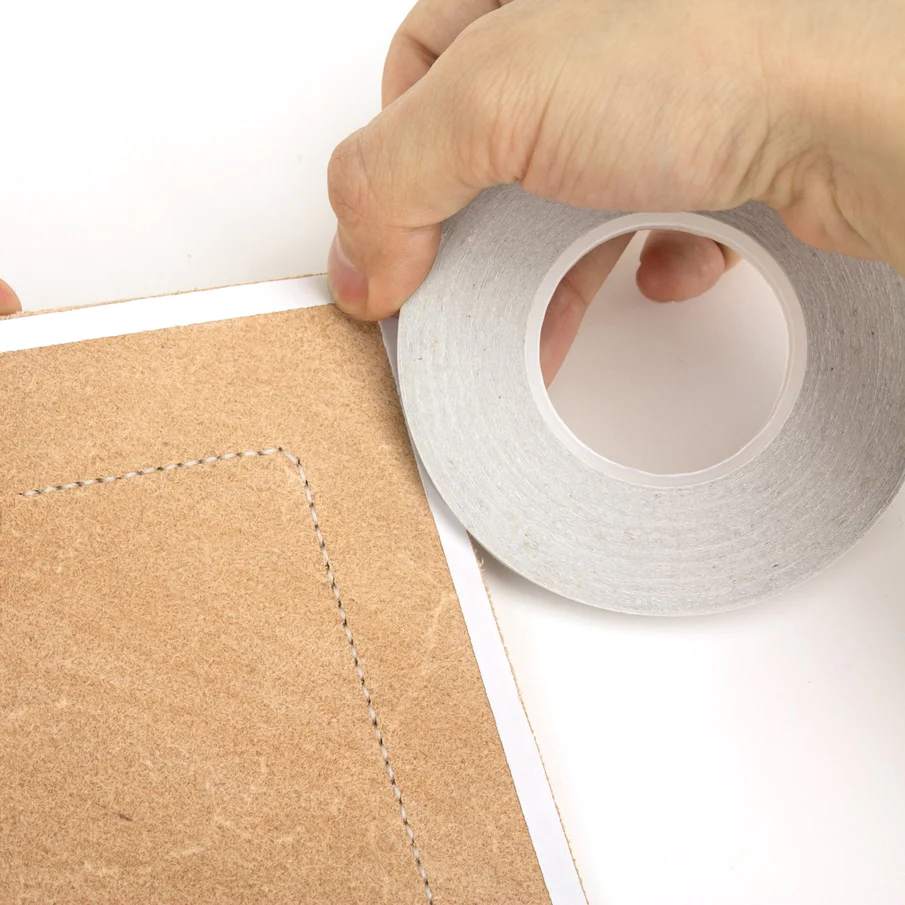 Doublesided tape is a great alternative to glue in certain situations. The hold is much more temporary, but its perfect for attaching non-leather materials like zippers.