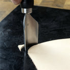 The large bevel and tapered handle provide great visibility and ease of use, while also allowing easy sharpening/stropping of the hardened tool steel to keep it working at maximum efficiency.