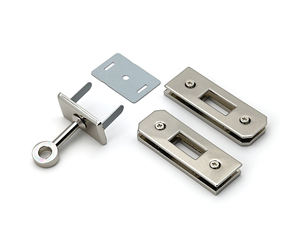 This turn lock features a high gloss polished finish, and screw together hardware. The screw together feature was a game changer in our testing, as trying to set the perloir rivet nails both required an expensive custom tool, and provided mixed results.